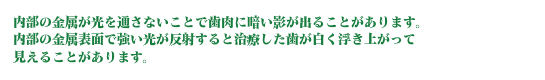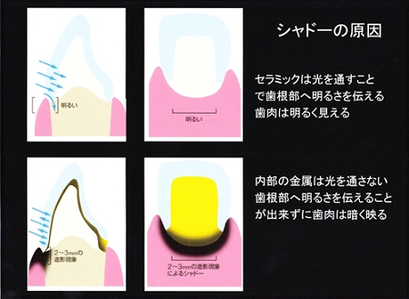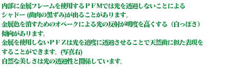 * 金属の露出や、金属イオンの影響による歯肉の変色の心配がありません。