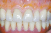 症例のような顕著な着色歯の場合も、Sinfonyは色を混和することで患者固有の色調を